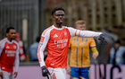 以德报怨,萨卡友善回应此前举起挑衅字样球衣的曼斯费尔德球迷